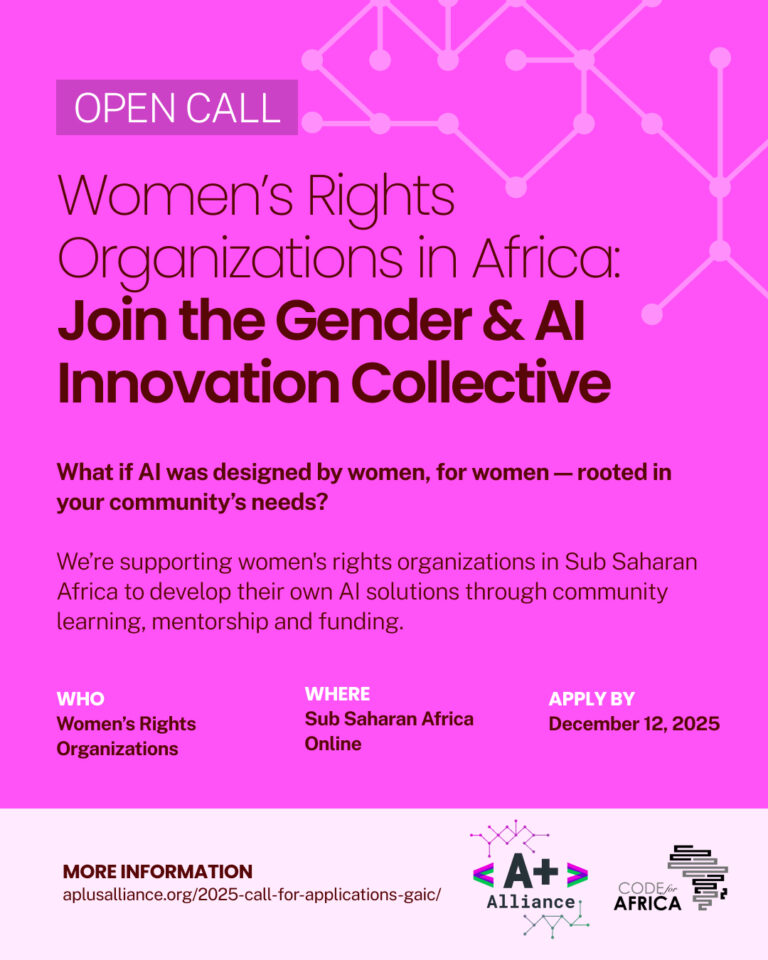 The <A+> Alliance for Inclusive Algorithms, Women at the Table, and Code for Africa launched the Catalyzing Inclusive AI Research Network (CIAIRN), an 18-month initiative supported by Canada’s International Development Research Centre (IDRC) that will transform how women’s rights organizations across Africa harness artificial intelligence for gender equality.